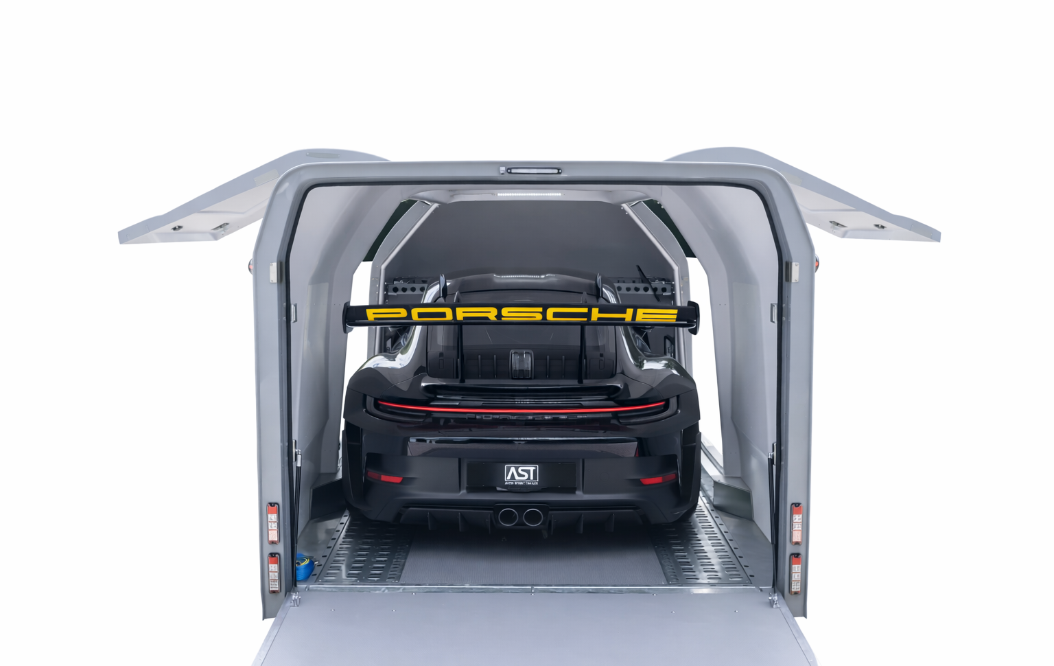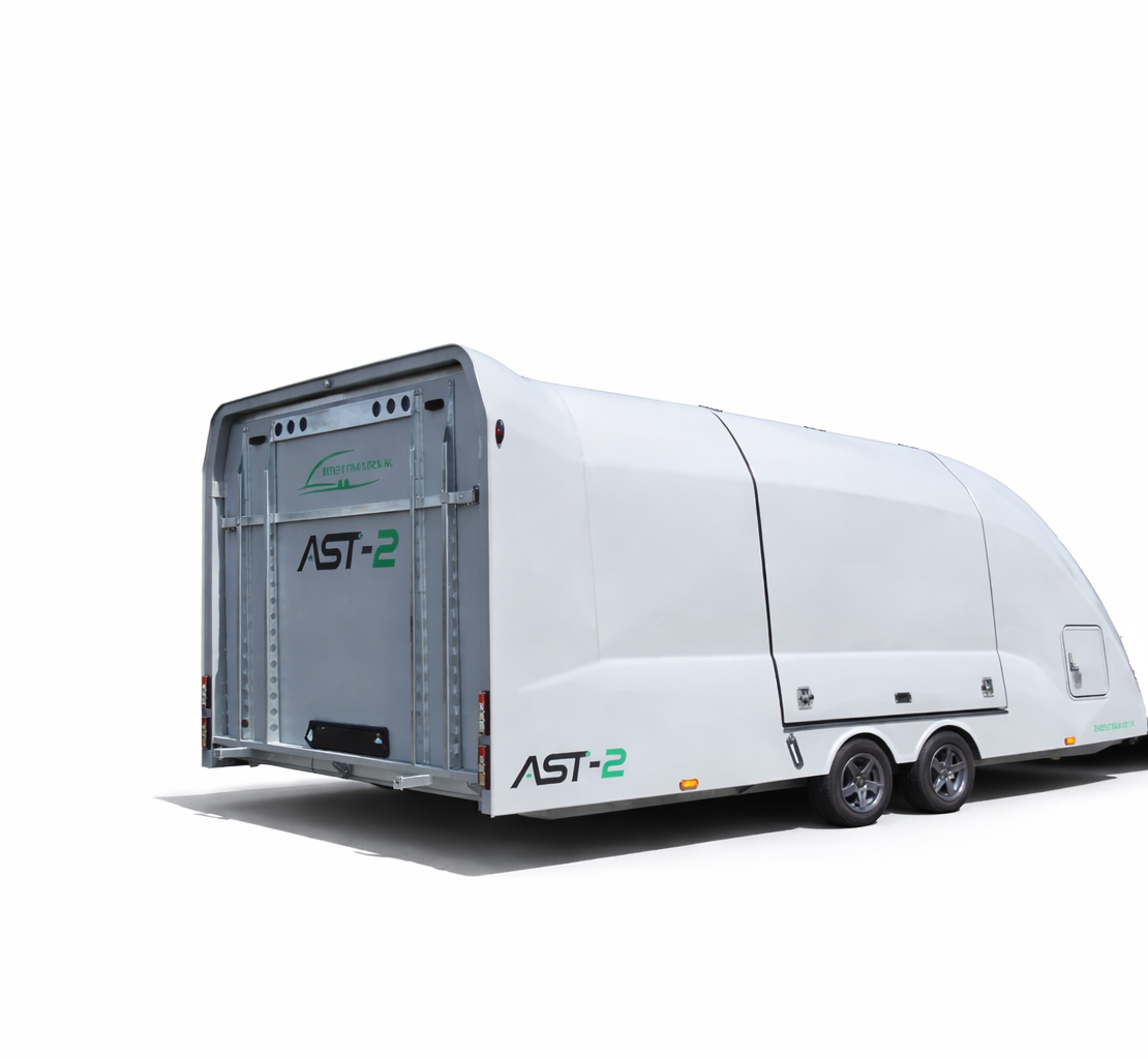 De AST-2 autotrailer is een hoogwaardige gesloten polyester auto transporter die speciaal is ontworpen voor het vervoeren van sportauto's, oldtimers, motorfietsen en andere voertuigen.