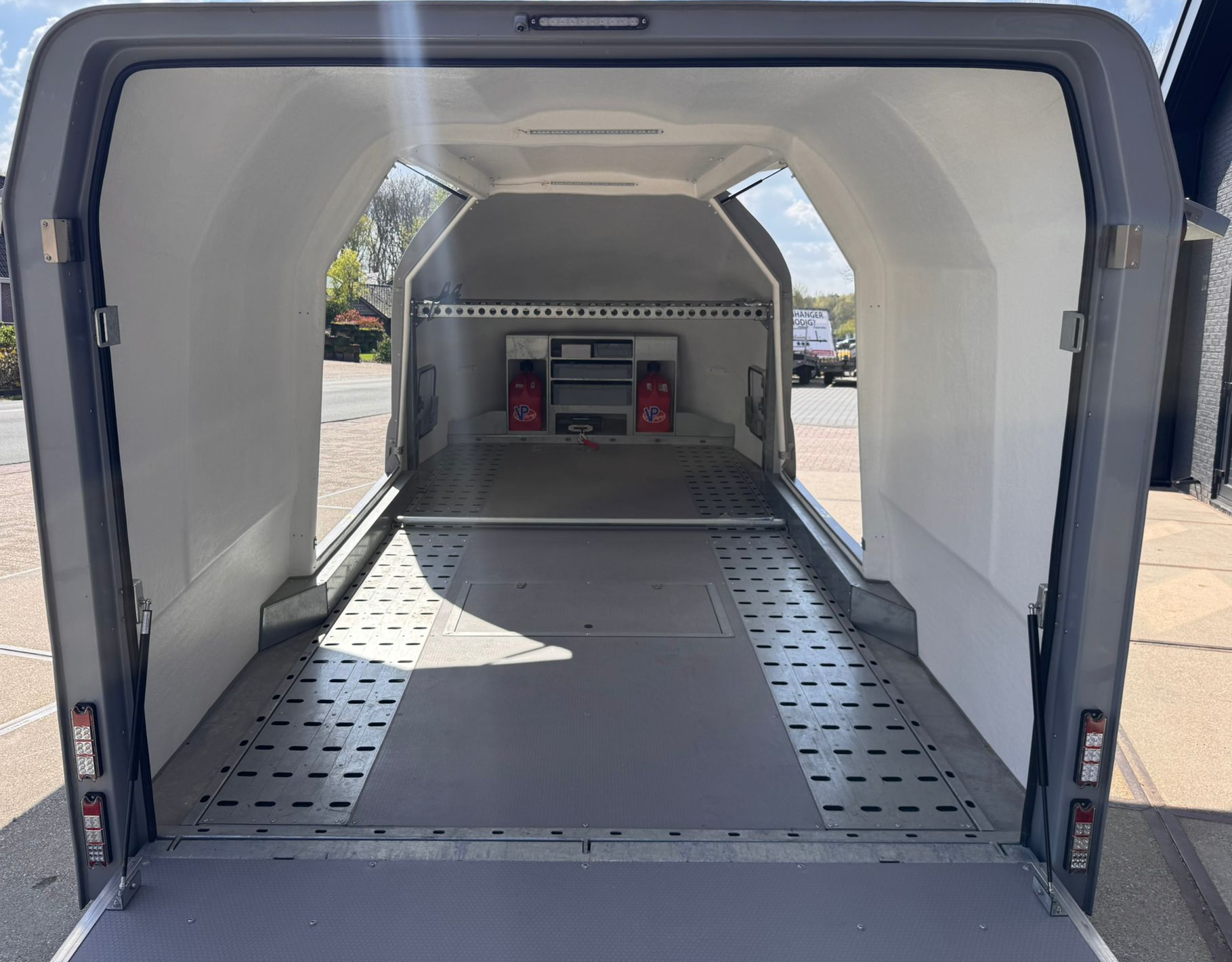 Vanwege zijn lage leeggewicht van ca 1000kg mag je 2000-2500kg toeladen. Door zijn brede ruimte tussen de wielkasten van maar liefst 2,09m en een inwendige hoogte van 1,83m is hij voor bijna elke auto geschikt. De combinatie van een aerodynamische polyester opbouw uit 1 stuk en een degelijk chassis, maken de aanhangwagen zeer stabiel en veilig op de weg. Het kantelbare ontwerp maakt het gemakkelijk om voertuigen te laden en lossen, terwijl het gesloten polyester ontwerp zorgt voor veilig en schoon transport van uw voertuigen.