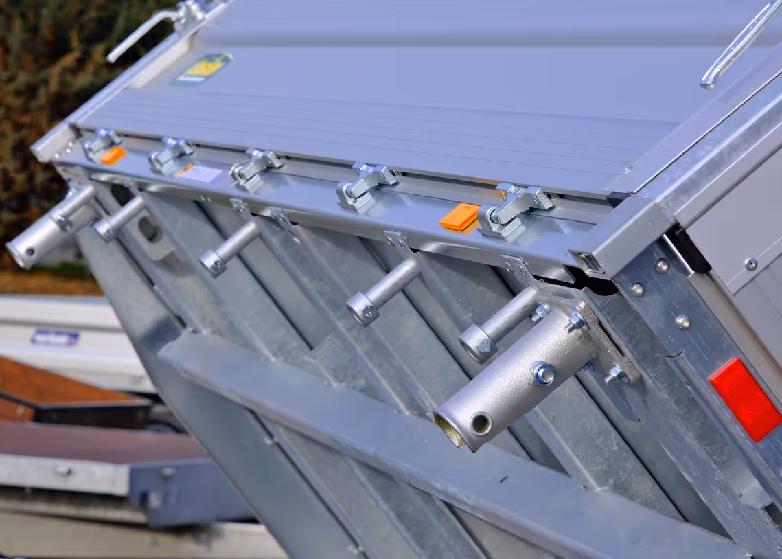 - Massieve stalen vloer, over de gehele breedte van de aanhanger.
