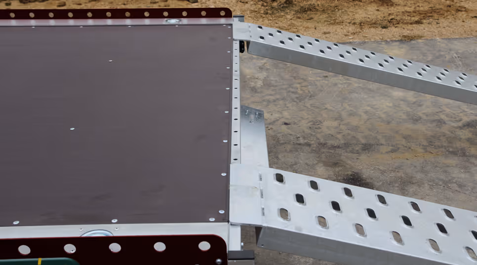 De aanhanger heeft een verzinkt en stevig gelast staalchassis, dit zorgt voor goede stabiliteit. Dankzij het nette afgewerkte as, remmen en verlichting is deze aanhanger comfortabel op de weg. De zijkanten zijn mooi gepoedercoat zwartgrijs.