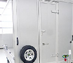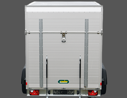 - Dubbele achterdeuren met aluminium scharnieren.
