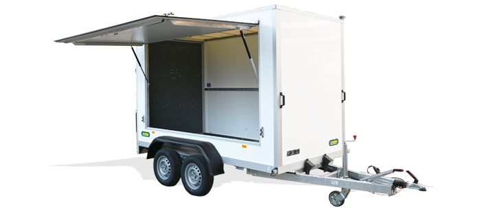 De aanhanger heeft een verzinkt en stevig gelast staalchassis, dit zorgt voor goede stabiliteit. De wanden zijn van sandwichpanelen dit is een hoogwaardige gladde buiten laag, met gel-coat-afdichting, in de kleur wit. De gel-coating zorgt ervoor dat de aanhanger niet verkleurd.