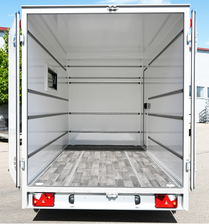 De aanhanger heeft een verzinkt en stevig gelast staalchassis, dit zorgt voor goede stabiliteit. De wanden zijn van sandwichpanelen met een dikte van 30MM, dit zorgt voor goede isolatie en stabiliteit.