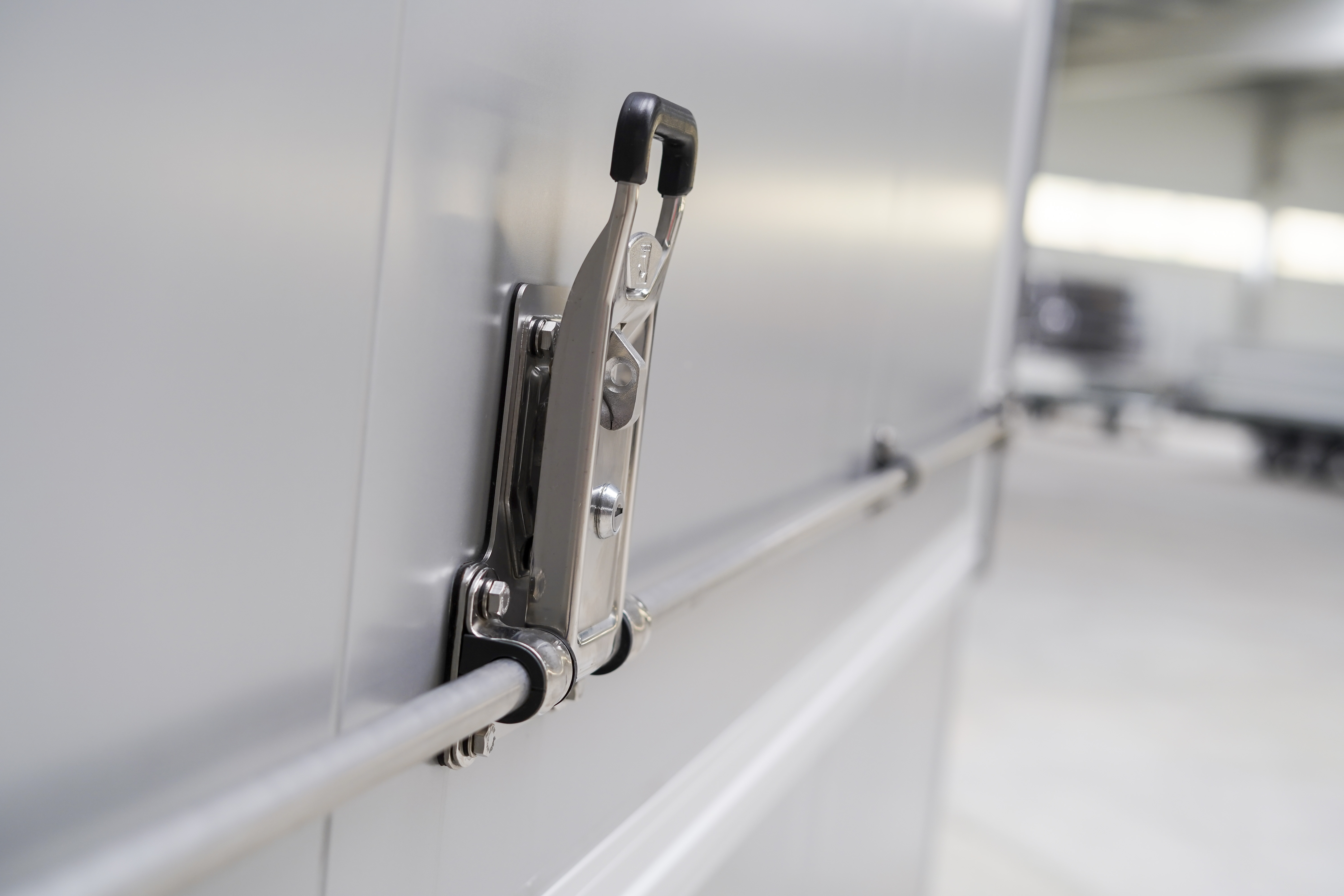De aanhanger heeft een verzinkt en stevig gelast staalchassis, dit zorgt voor goede stabiliteit. De wanden zijn van sandwichpanelen met een dikte van 45MM, dit zorgt voor goede isolatie en stabiliteit.